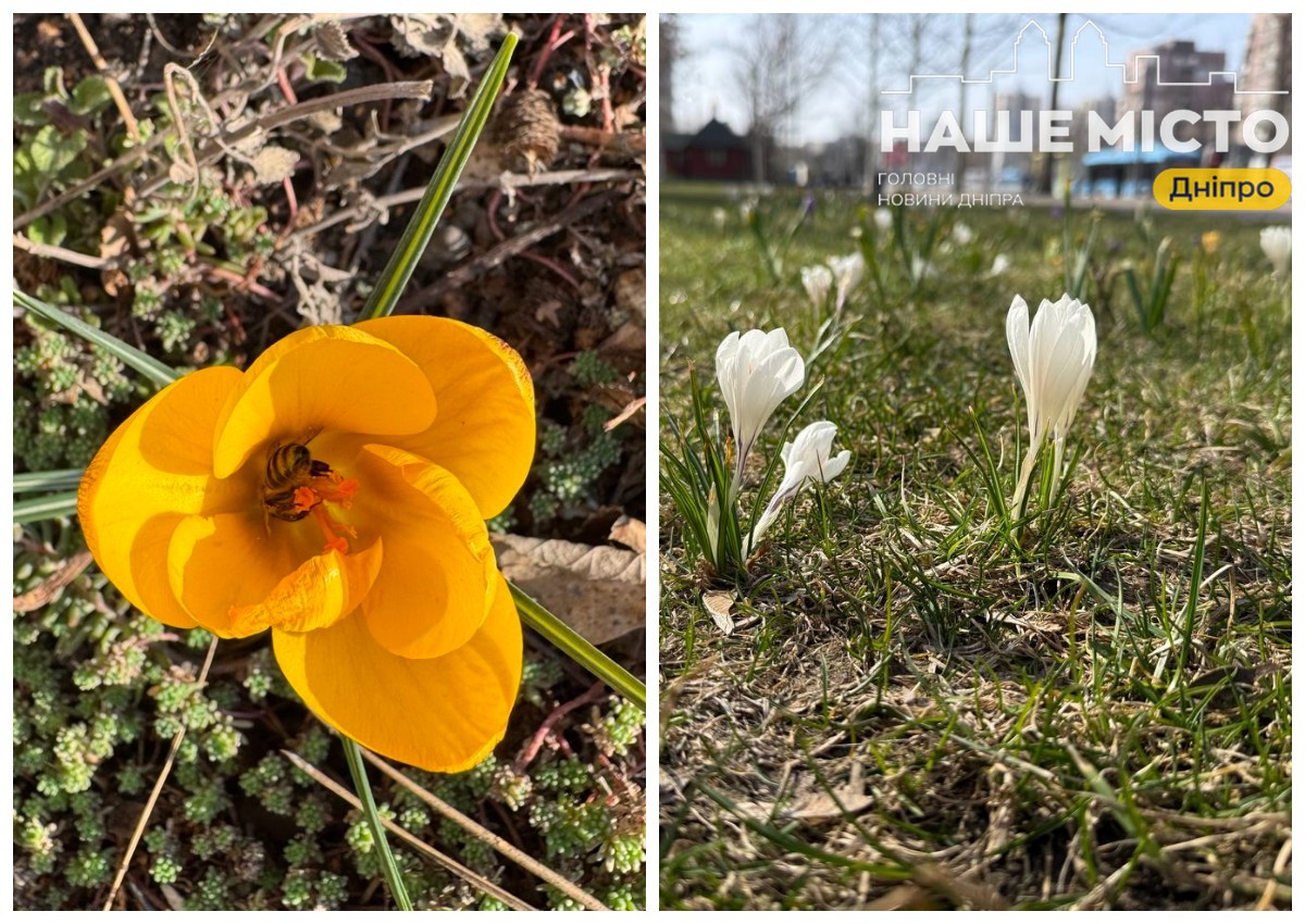 На набережній Дніпра з початку березня зацвіли крокуси, які стали одним із перших ознак весни в місті. Фіолетові, білі та жовті квіти пробиваються крізь ще не зовсім зелену траву, нагадуючи, що холодний сезон минув, а тепло вже близько.