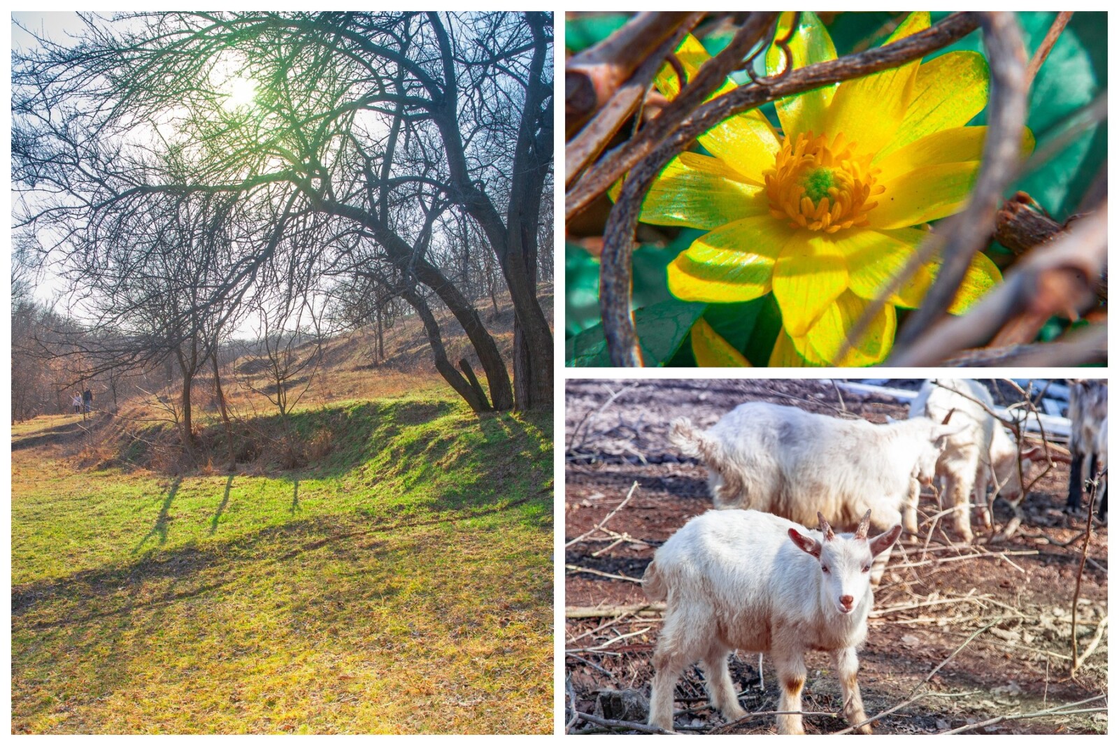 - Козенята, що бігають серед дерев;