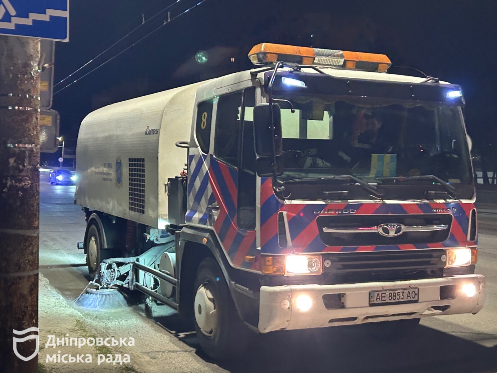 У ніч з 7 на 8 квітня на вулицях Дніпра працювали 10 великих підмітально-прибиральних машин, 2 машини типу «Бродвей» та одна машина для миття колесовідбійного бруса. Водії та пішоходи можуть спостерігати, як техніка регулярно прибирає місто від листя, гілок і побутових відходів.