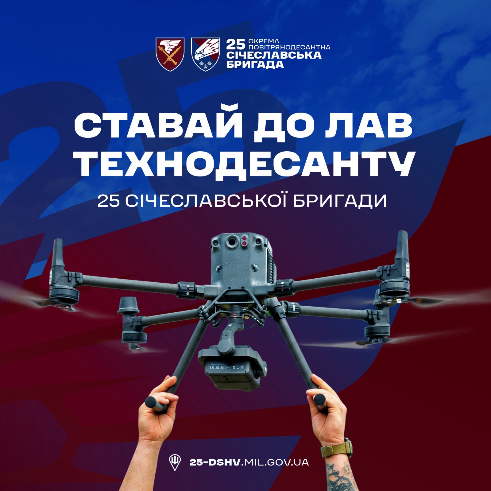 Легендарна 25-та окрема повітрянодесантна Січеславська бригада запрошує добровольців приєднатися до підрозділів ударних безпілотників.